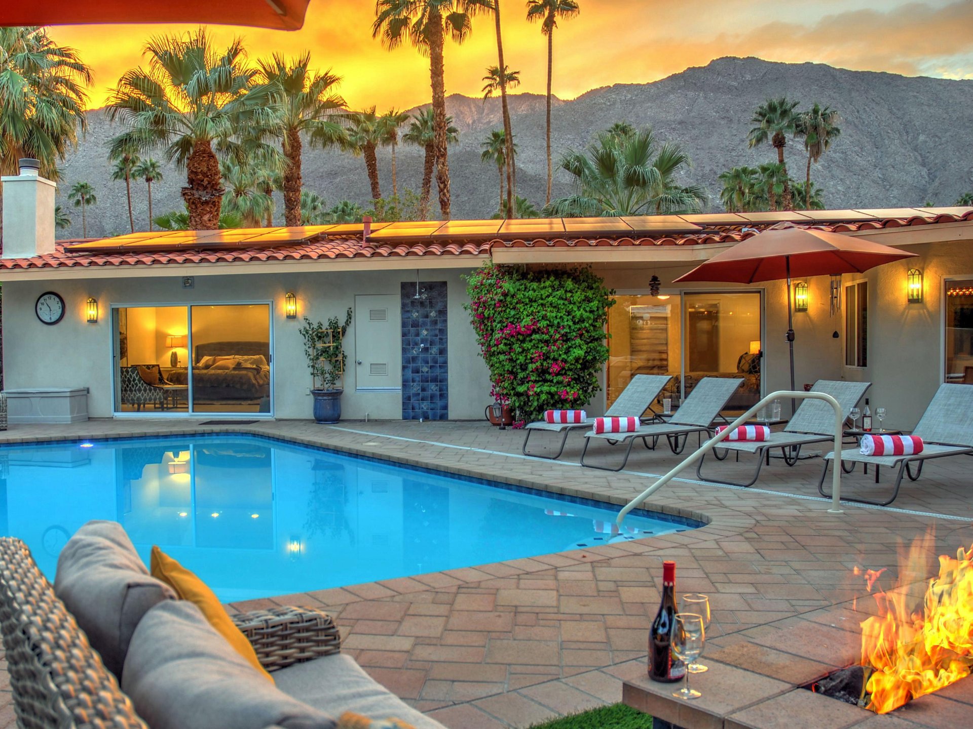 This bright and cheerful designer home features stylish interiors, a cozy indoor fireplace, and a detached casita. Thoughtful updates throughout elevate any stay, and the heated pool /spa and outdoor fire pit offer plenty of places to mingle.